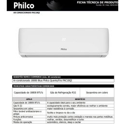 Ar Condicionado Split Hi Wall Philco 18000 BTUS/h Quente e Frio PAC18QI – 220 Volts